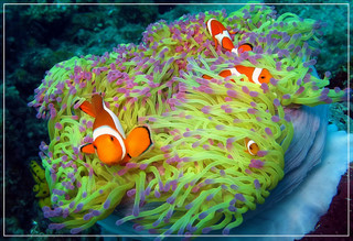 Флора и Фауна: морские звезды, мурены, красочные голожаберные моллюски, стаи больших и маленьких рыб, множество маленьких разноцветных рыбешек.